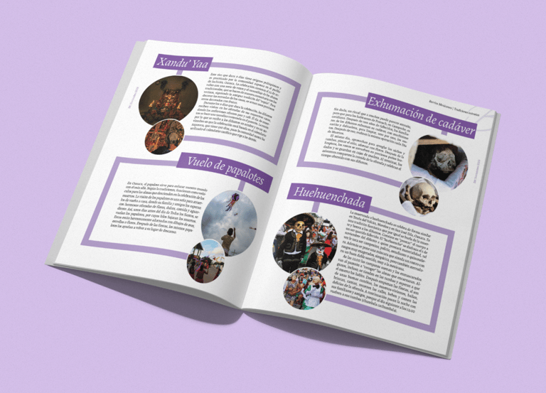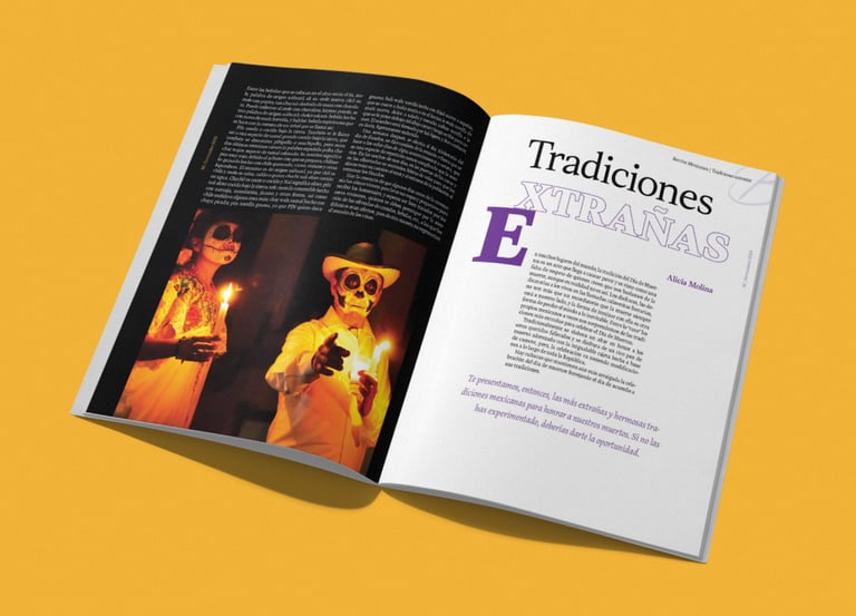 It is a cultural magazine that shows the traditions, handicrafts, gastronomy and some neighborhoods that bring cultural diversity to mexican culture. This publication is for the month of November, a very special month for mexicans to remember their loved ones that passed away, that tradition is known as "Día de los Muertos". We show you some parts of Mexico that aren't well known, and the ways they honor the death.